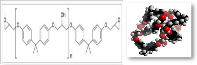 رزین های اپوکسی همانند وینیل استرها از ساختمان زنجیره های بلند مولکولی تشکیل شده اند که مکانهای واکنش پذیرشان در انتهای این زنجیره هست با این تفاوت که به جای گروه های استری، این مکان ها از گروه های اپوکسی تشکیل شده اند. نبودن گروه های استری در این رزین ها به معنی داشتن مقاومت بسیار خوب به خصوص در مقابله با آب میباشد. همچنین مولکول های اپوکسی در مرکز خود دارای دوگروه حلقوی اند که بهتر از گروه های خطی قادر به جذب تنش های مکانیکی و حرارتی هستند بنابراین رزین های اپوکسی خواص سفتی، چقرمگی و مقاومت حرارتی خیلی خوبی را ارائه میکنند.