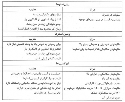 ویژگیهای رزینهای پلی استر و اپوکسی
